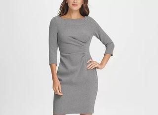 Vestido feminino DKNY com babados laterais e bainha em malha, cor carvão, tamanho 12