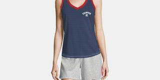Camiseta regata Champion Heritage Cotton com decote em V, azul, tamanho médio, feminina