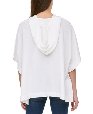 Moletom com capuz DKNY Logo Poncho feminino, branco, tamanho médio