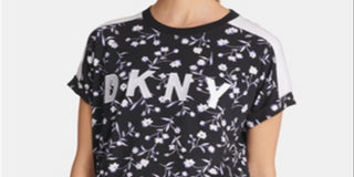 Camiseta feminina DKNY com logo relaxado, preta, tamanho pequeno