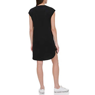 Vestido curto feminino com logo DKNY, preto, tamanho médio
