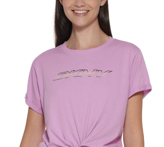 Camiseta feminina DKNY de algodão com nó e logotipo, roxa, tamanho extragrande