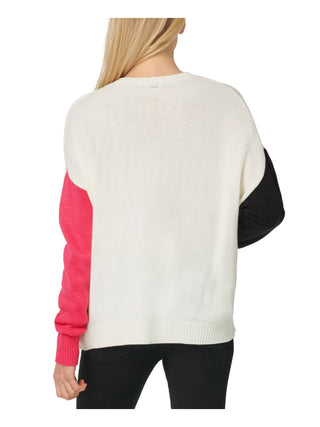 Suéter feminino DKNY de manga comprida e gola redonda, branco, tamanho pequeno