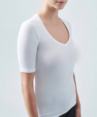Atm - CAMISETA MANGA CURTA COM DECOTE EM V E CANELADO MODAL