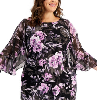 Vestido tubinho de chiffon com mangas curtas feminino conectado, roxo, tamanho 14W