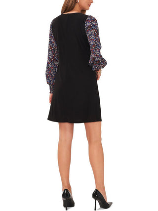 Vestido feminino MSK com mangas estampadas e punhos franzidos, preto, tamanho médio