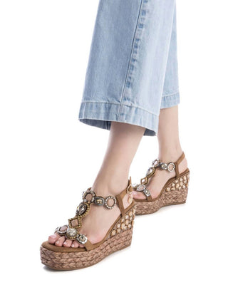 Xti - Sandálias femininas de cunha com detalhes em pedras preciosas