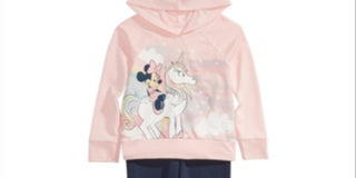 Conjunto de 2 peças de moletom com capuz e calça de moletom da Disney Little Girl Unicórnio Minnie Mouse, rosa, tamanho 5