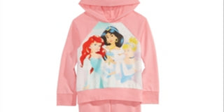 Conjunto de 2 peças de blusa com capuz e calça de moletom do esquadrão das princesas da Disney para meninas, rosa, tamanho 4