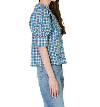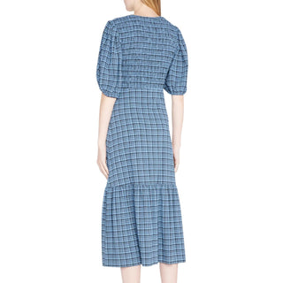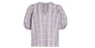Ganni - Blusa de gola aberta com xadrez de seersucker
