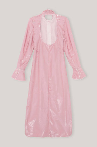 Ganni - Vestido justo com lantejoulas, gola longa e franzido