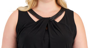 Top torcido com acabamento em couro sintético Kasper feminino, preto, tamanho 2X