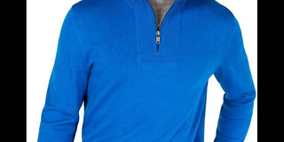 Suéter Alfani Masculino com Zíper e Punhos Canelados, Azul Primário, Tamanho Grande