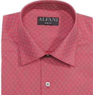 Camisas sociais Alfani Masculinas Slim-Fit Performance Stretch Easy-Care Vermelhas Tamanho 32-33