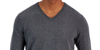 Suéter de algodão com decote em V liso Alfani masculino, cinza, tamanho médio