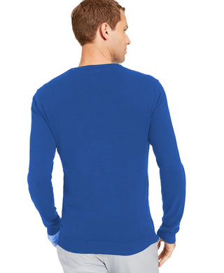 Suéter de algodão com decote em V liso Alfani masculino, azul, tamanho 2, extra grande