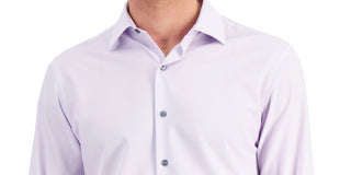 Camisa social masculina Alfani Slim Fit com estampa geométrica elástica em 4 direções, roxa, tamanho 34x35