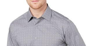 Camisa social masculina Alfani com gola alta e punho padrão em misturas de algodão, cinza, tamanho grande