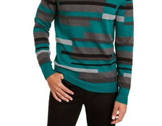 Suéter Alfani Masculino Listrado Texturizado com Gola V Verde Tamanho Grande