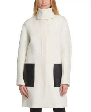 Casaco feminino DKNY com gola alta e bolso em couro sintético, branco, tamanho X-S