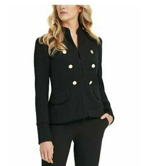 Jaqueta militar feminina DKNY com gola alta e abotoamento duplo, preta, tamanho 12