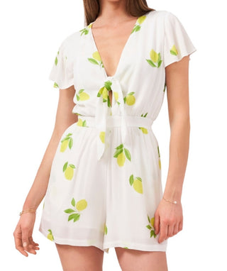 1.STATE Macacão Feminino Manga Curta Amarrado na Frente Marrom Tamanho X-G