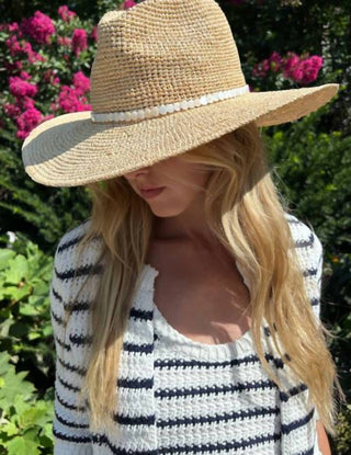 Jocelyn - Chapéu Feminino de Palha com Corações de Concha