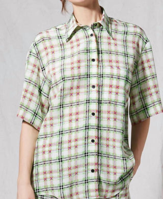Topshop - Blusa Bowling com Estampa Xadrez de Seda
