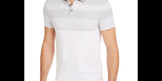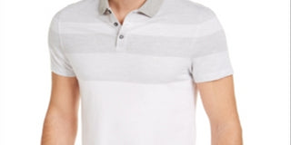 Camisa polo listrada de sarja masculina Alfani, tamanho grande, branca, combo