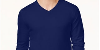 Suéter masculino Alfani com decote em V, azul, tamanho médio