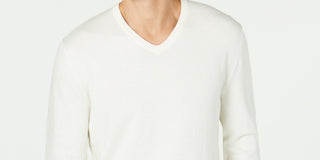 Suéter masculino Alfani com decote em V, branco, tamanho XX-G