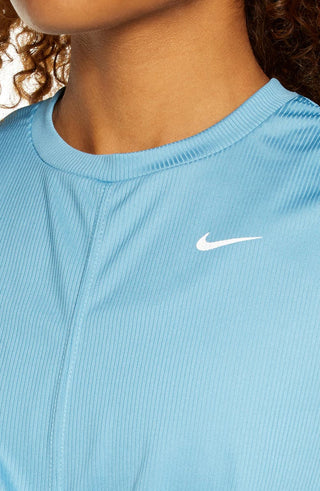 Camiseta de treino Nike Dry Crop Twist feminina, azul, tamanho pequeno