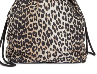 Bolsa feminina Ganni em poliéster reciclado com cordão, marrom, tamanho regular
