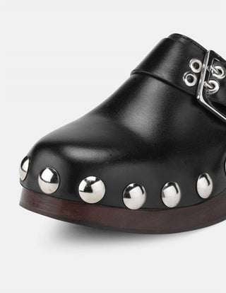 Ganni - Tamanco feminino retrô de couro com tachas