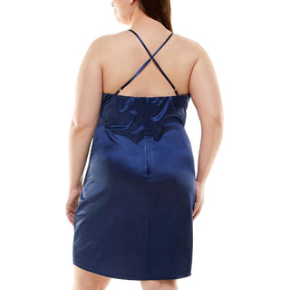Vestido envelope mini de cetim feminino sem palavras, azul, tamanho 24W