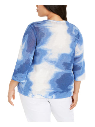 Cardigan feminino Alfani com manga 3/4 e lavagem ácida, azul, tamanho 0X