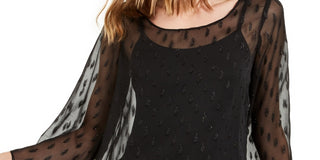 Blusa feminina Alfani com manga bufante e bainha de anjo, preta, tamanho pequeno e pequeno