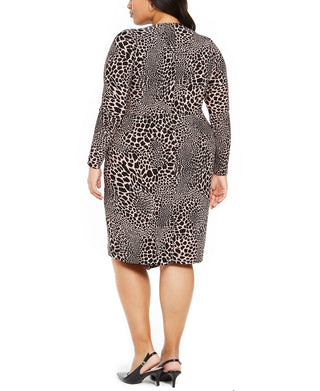 Vestido Alfani Feminino Estampa Animal Manga Longa Gola Abaixo do Joelho Bainha Marrom Tamanho 20W