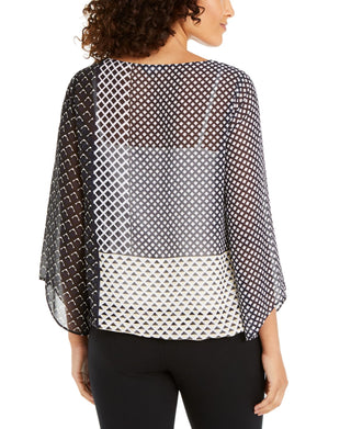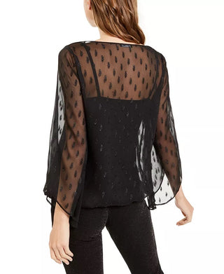 Blusa feminina Alfani com estampa de manga de anjo, preta, vários tamanhos, pequena P