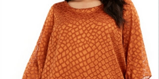Blusa texturizada Alfani feminina com mangas de anjo, gengibre e cobre, tamanho 0X