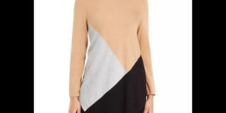 Suéter feminino Alfani assimétrico com blocos de cores marrom tamanho grande