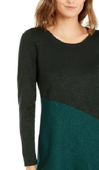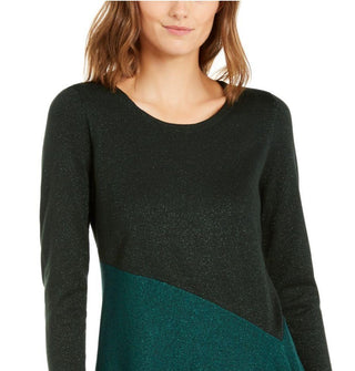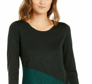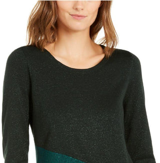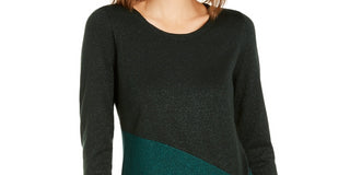 Suéter feminino Alfani assimétrico com blocos de cores, cor pinho esmeralda, tamanho pequeno
