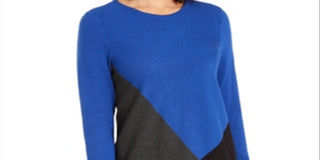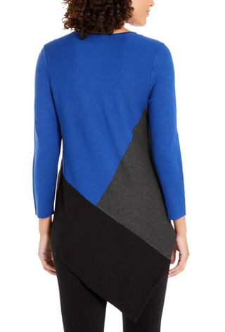 Suéter feminino Alfani assimétrico com blocos de cores azul safira tamanho grande