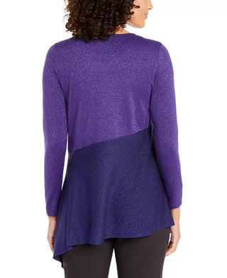 Blusa Alfani Feminina Assimétrica Colorblocked Shimmer Roxa Tamanho Médio