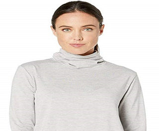 Top de treino de ioga com gola funil Nike feminino cinza claro, tamanho pequeno
