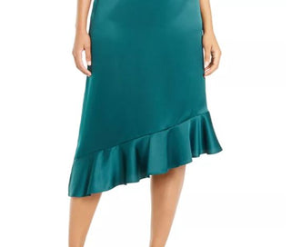 Saia feminina Alfani com babados assimétricos, verde escuro, tamanho 14