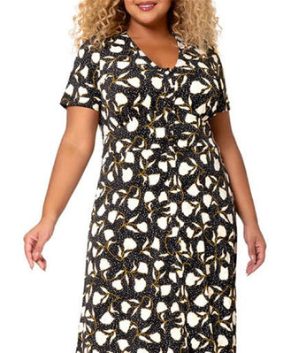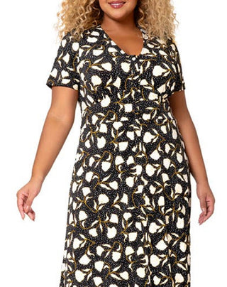 Vestido midi floral Francesca de bolinhas Leota feminino, preto, tamanho 2X