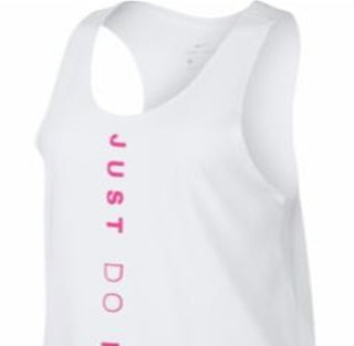 Camiseta regata Nike Miler Dri-Fit Just Do It Running feminina, branca, tamanho pequeno