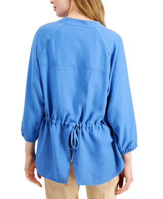 Blusa feminina Alfani com manga bispo e amarração nas costas, azul, tamanho pequeno