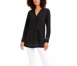 Blusa feminina Alfani preta com bolinhas e manga 3/4, tamanho P, preta, tamanho P
